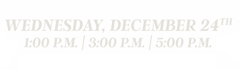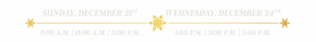All of our Christmas Eve services are identical. Each service will start with contemporary worship followed by an insightful Christmas message. We will end each service with family communion and prayer.